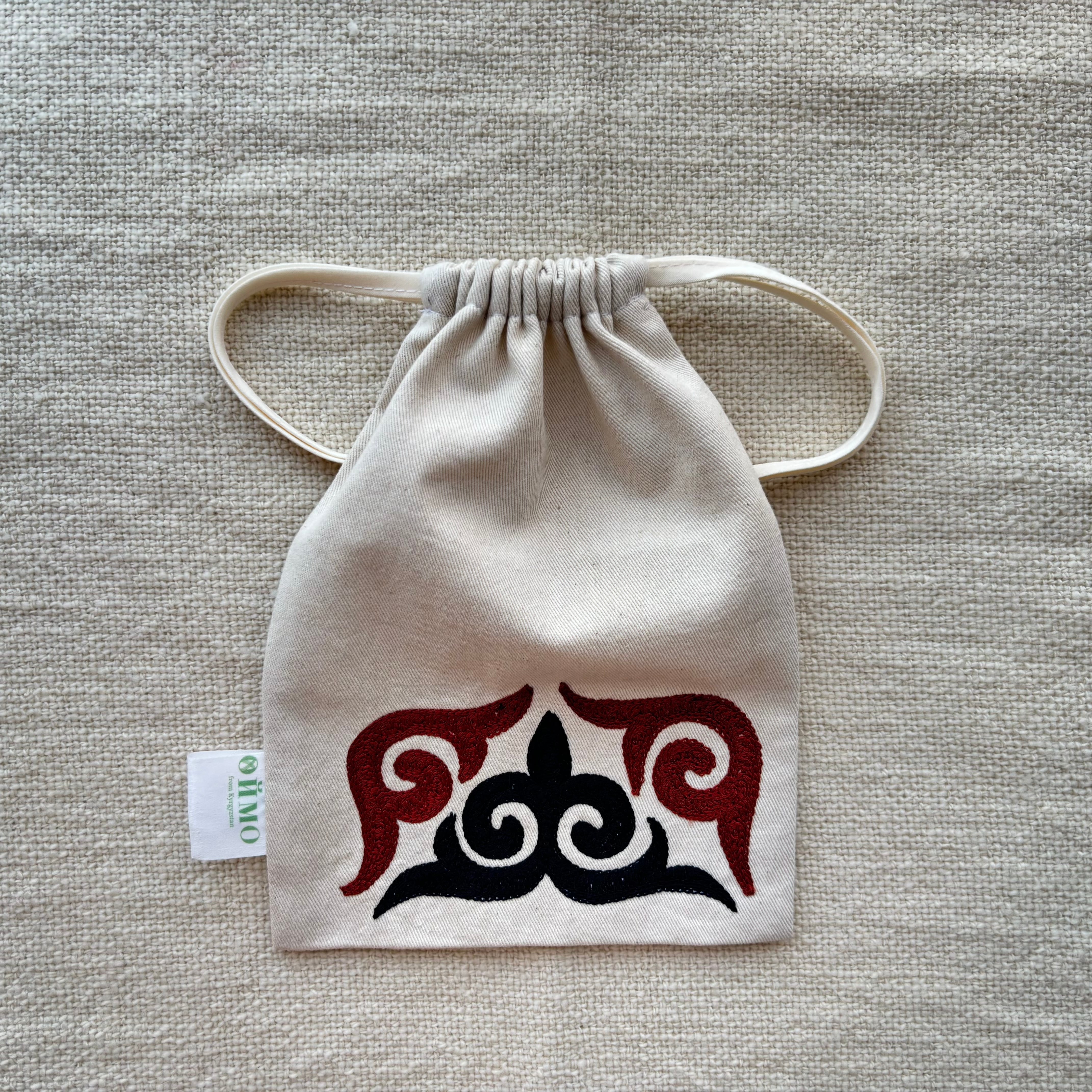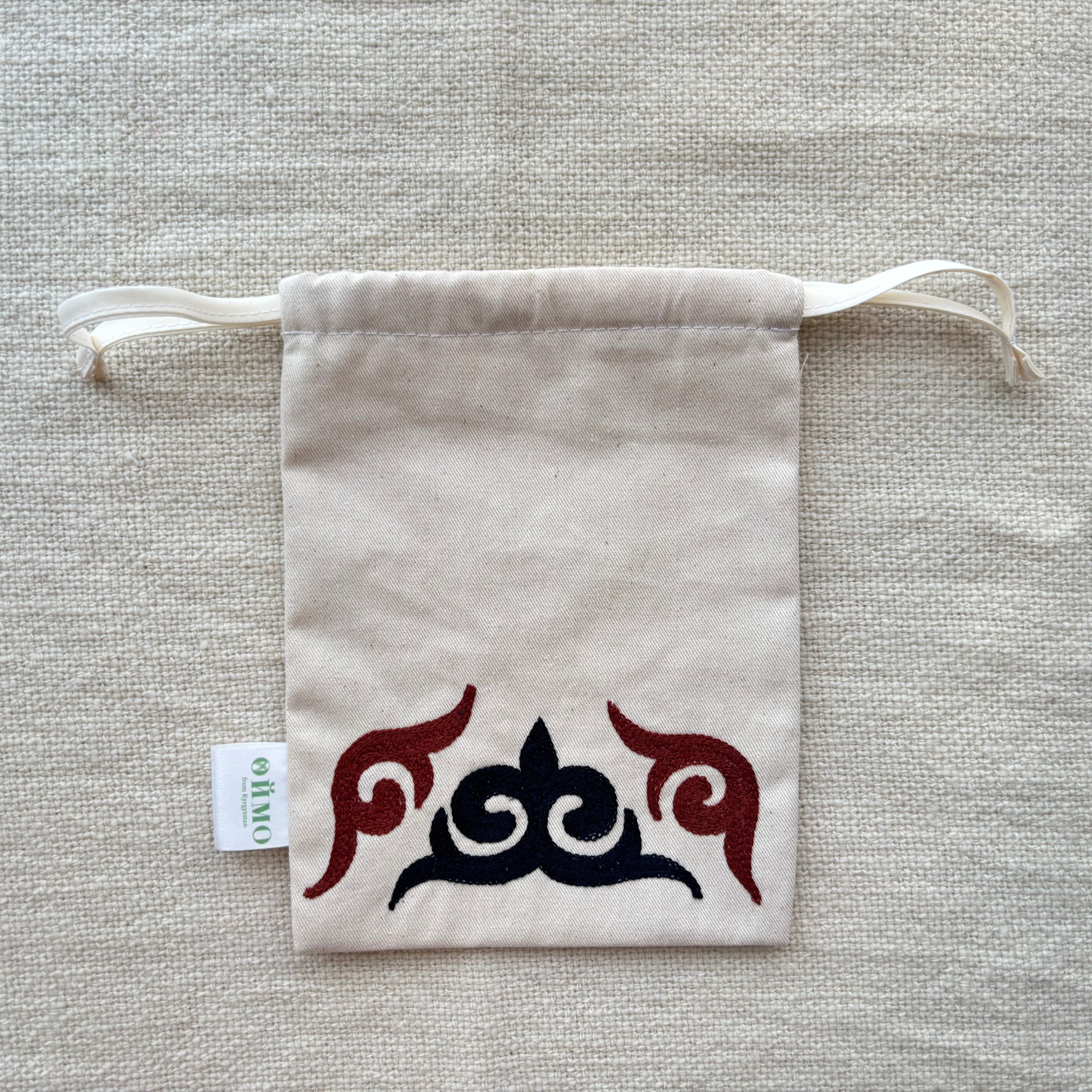 キルギスの伝統模様「オイモ」が刺繍された使い勝手の良い巾着ポーチです。