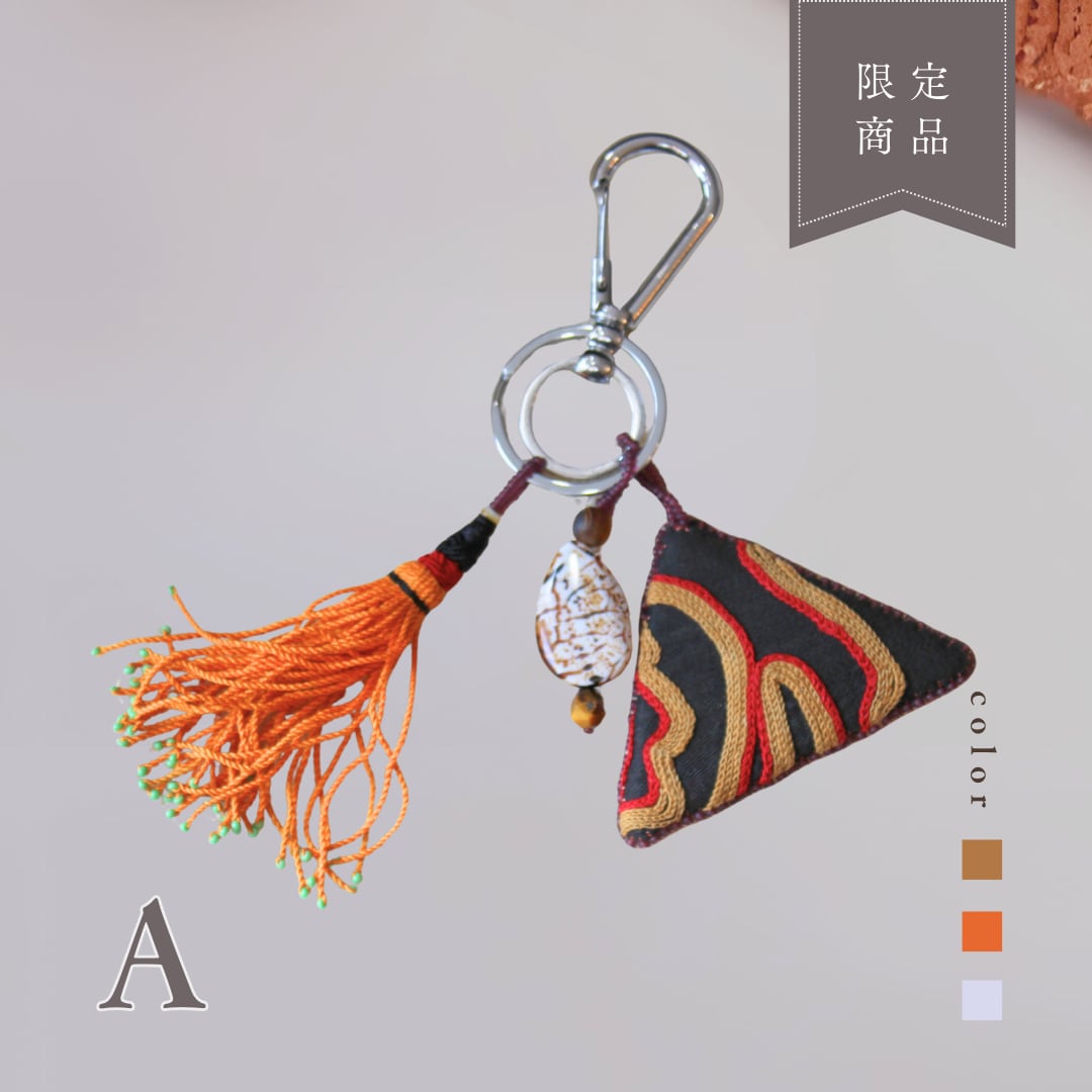 【トゥマール・キーホルダー】 キルギスのお守り ヴィンテージ 手刺繍トゥマール新作 (太陽の祝福)ーイエロー