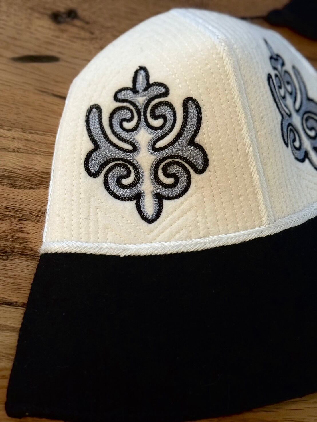 【キルギス民族帽子】男性用 高品質羊毛の手刺繍カルパック
