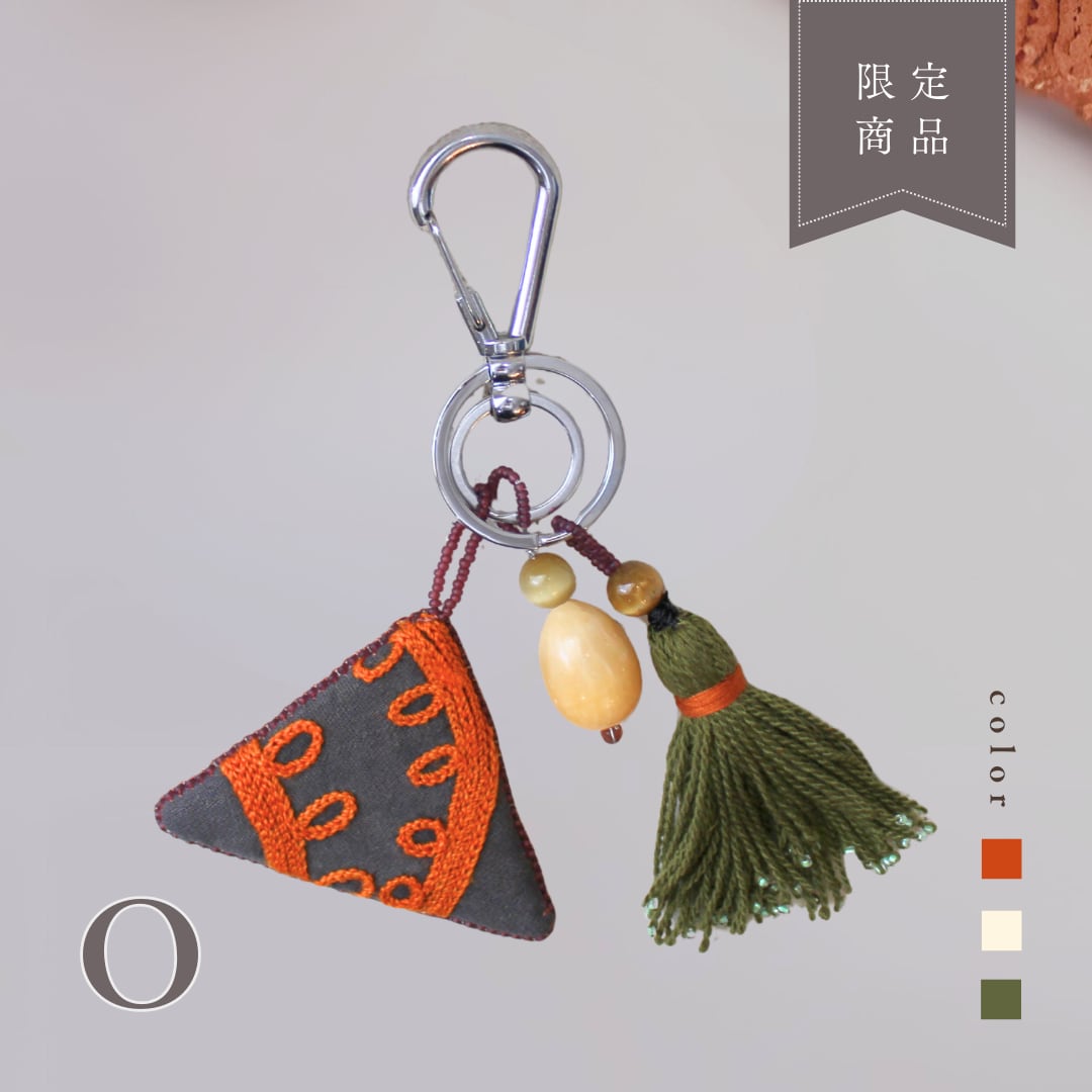【トゥマール・キーホルダー】 キルギスのお守り ヴィンテージ 手刺繍トゥマール 〈橙葉〉オレンジ・グリーン