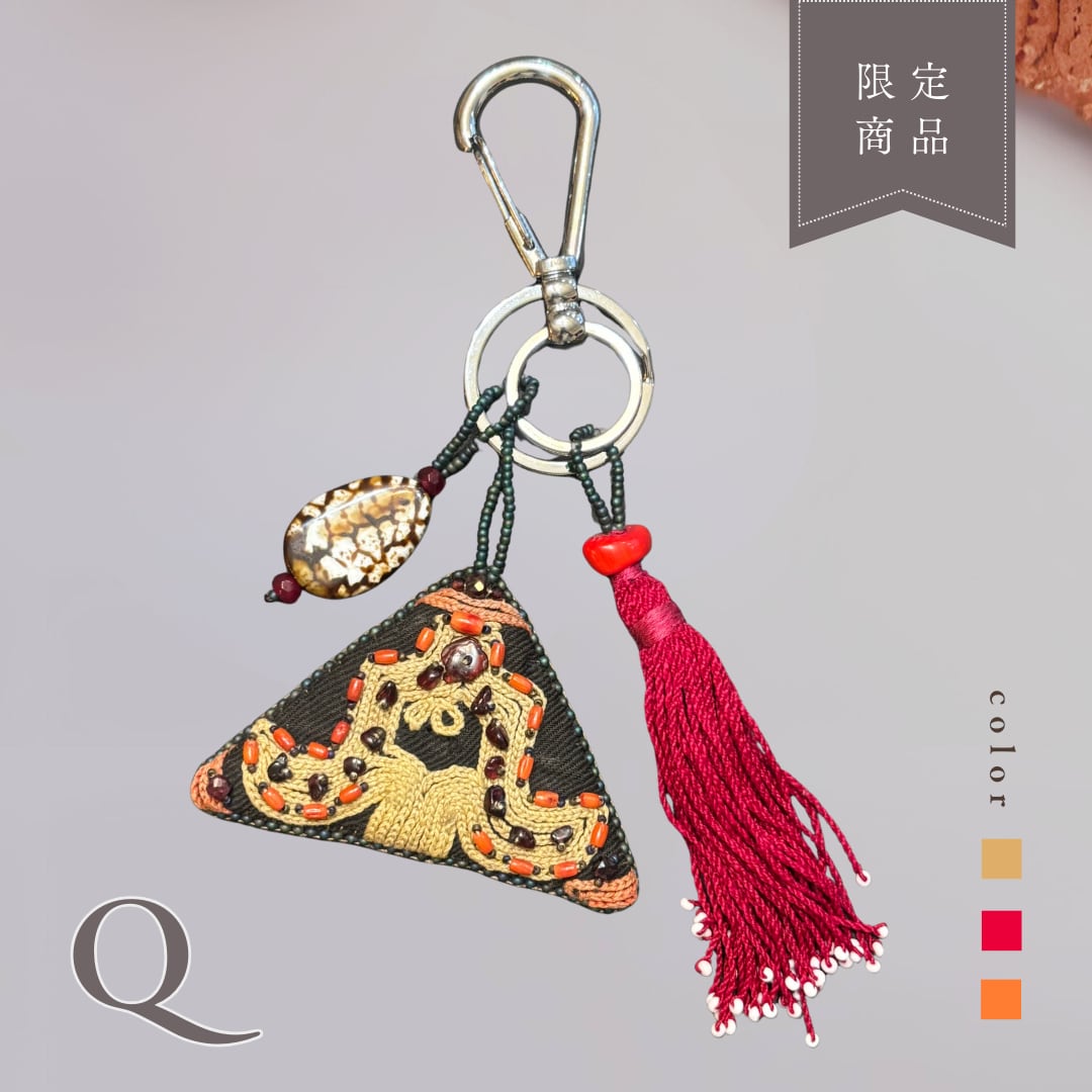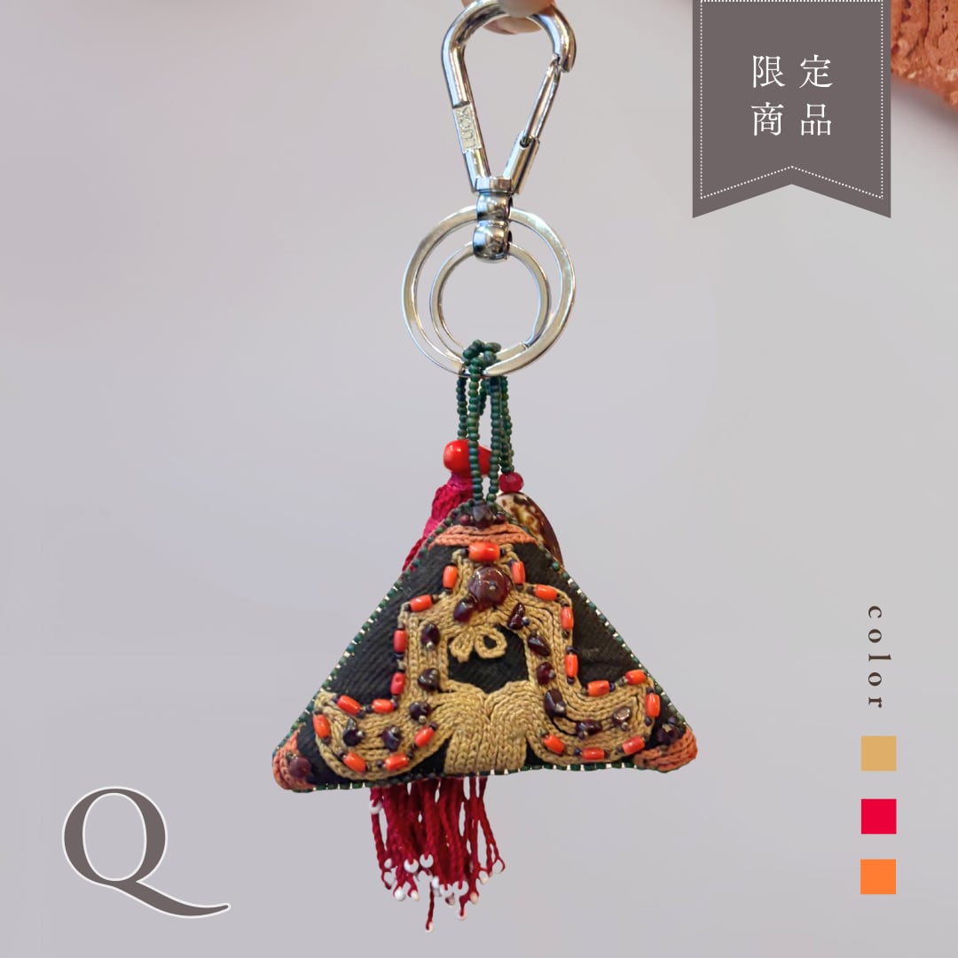 【トゥマール・キーホルダー】 キルギスのお守り ヴィンテージ 手刺繍トゥマール 〈紅守〉コーラル・ガーネット