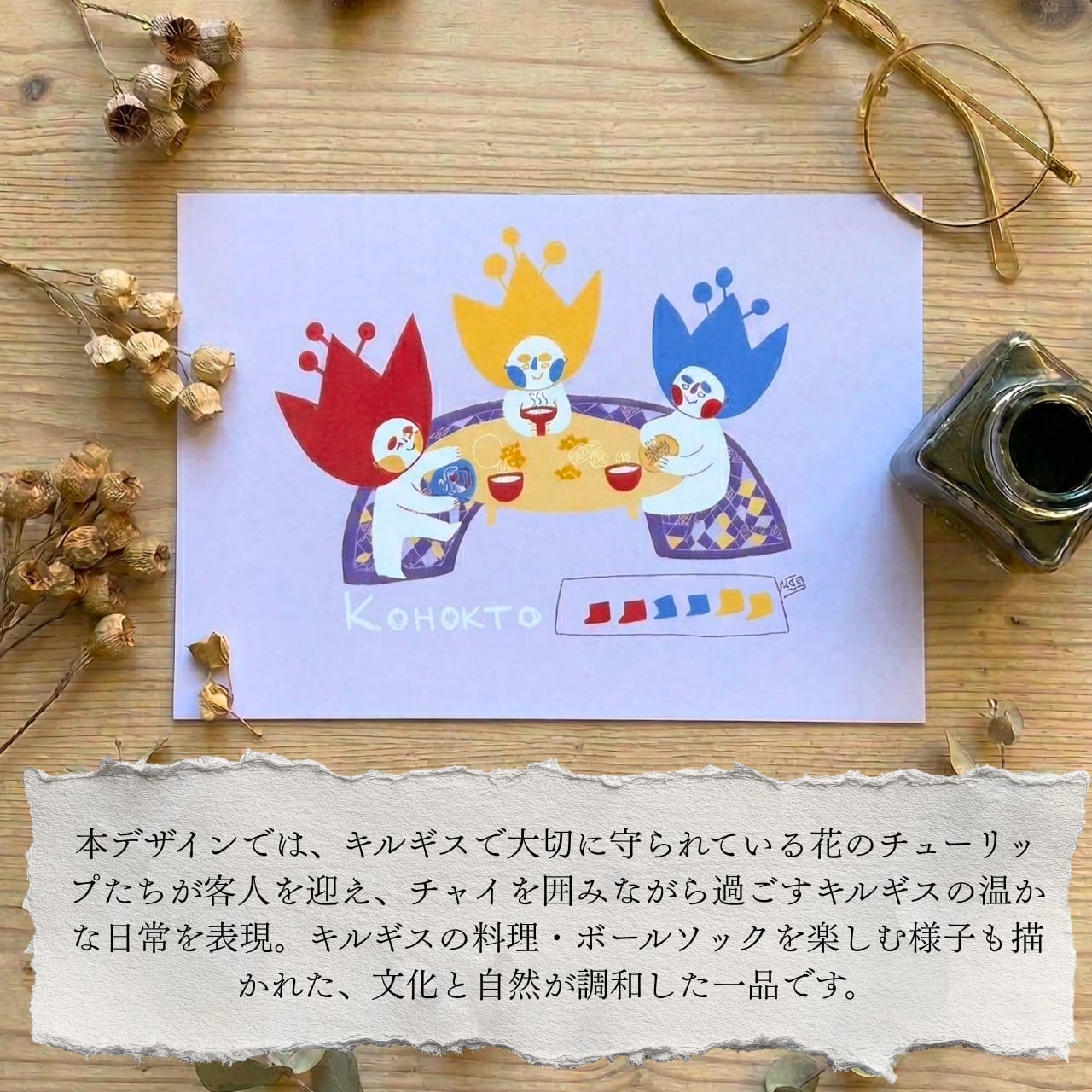 【デザイナーズ商品】キルギスの自然と文化を描く| ポストカード