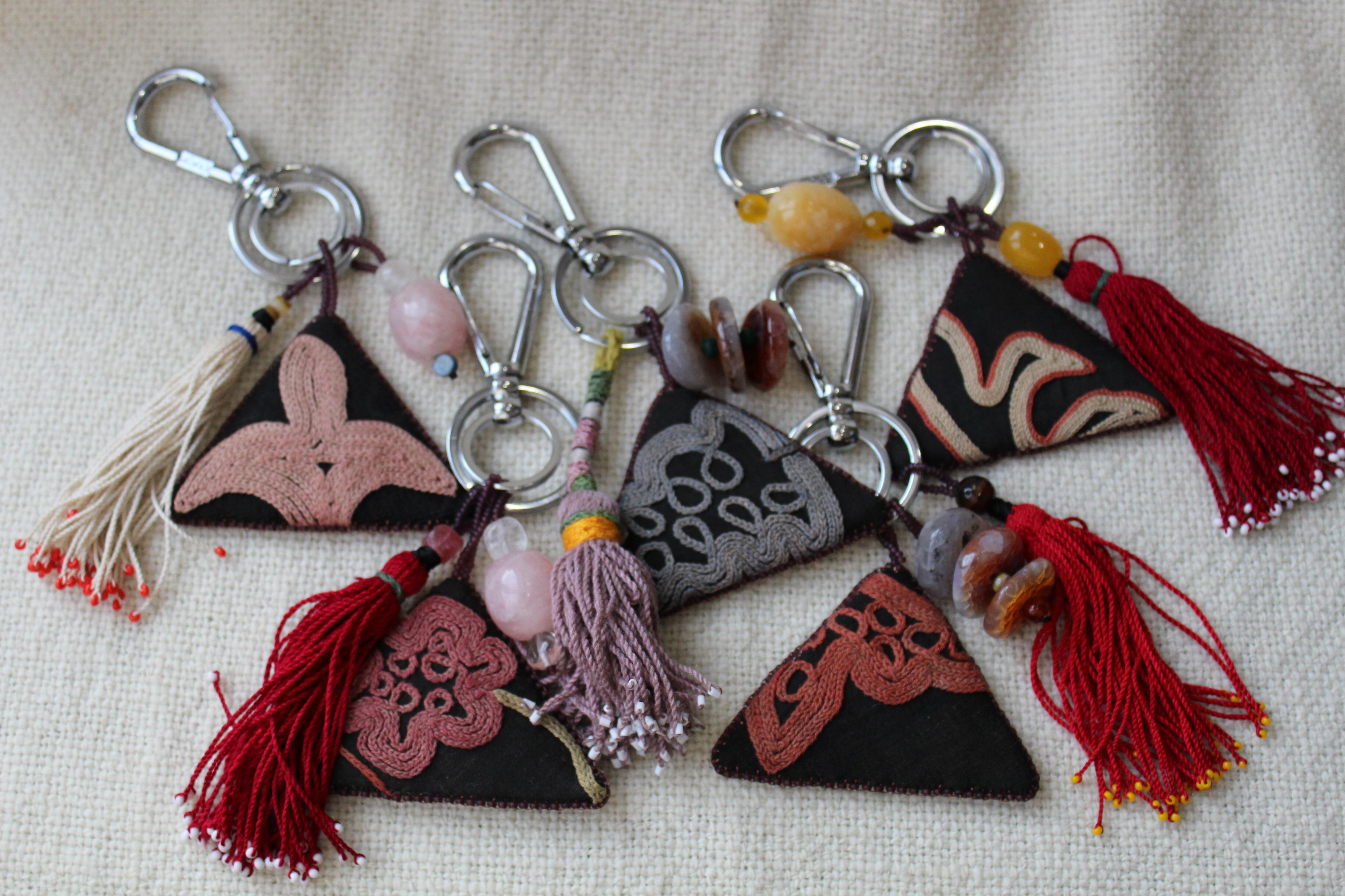 また、下にあしらわれたタッセルもトゥシュキィズに由来し、古くから装飾・お守り・祝福の象徴として使われてきました。中央アジアで昔から使用されてきたタッセルを使用しています。