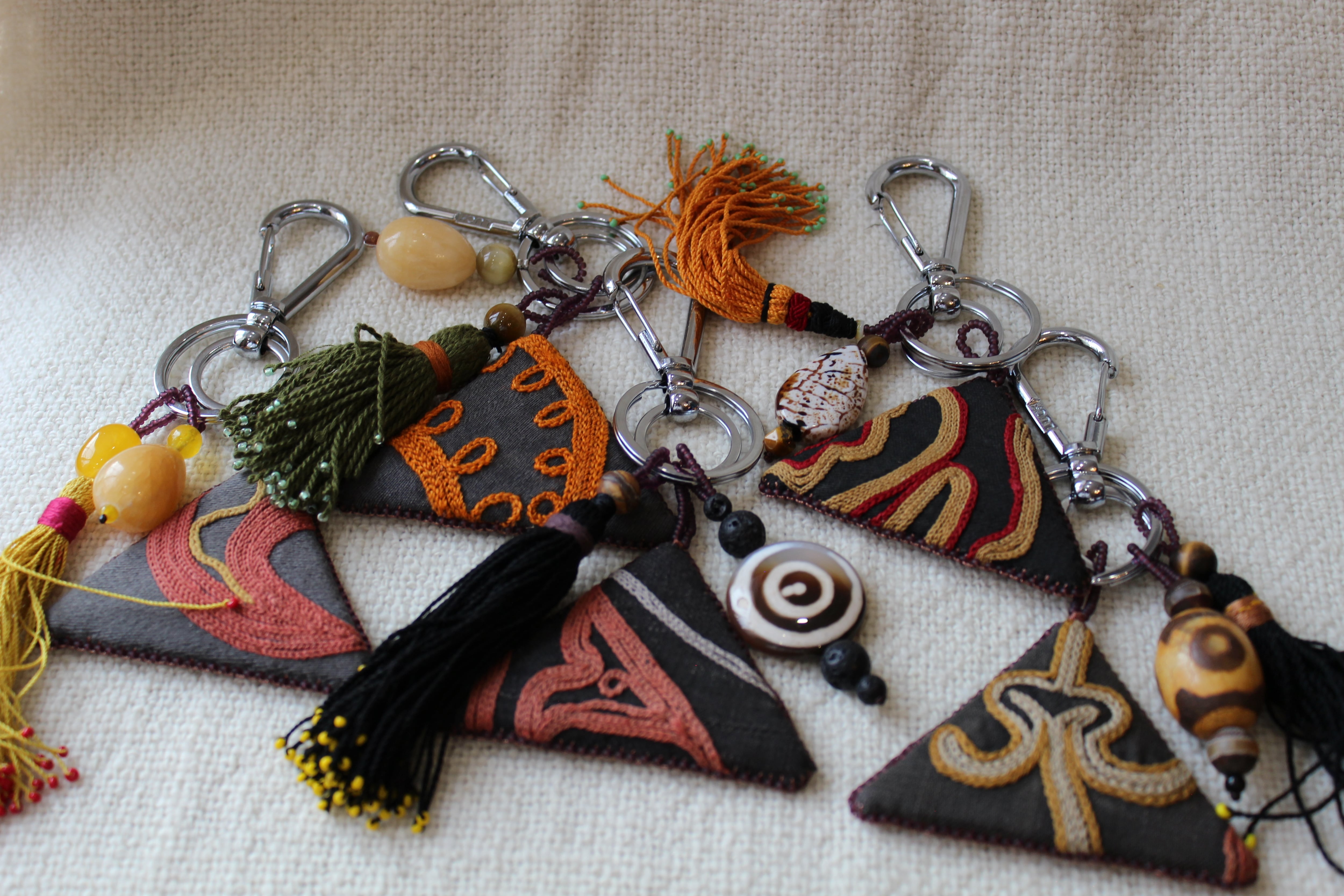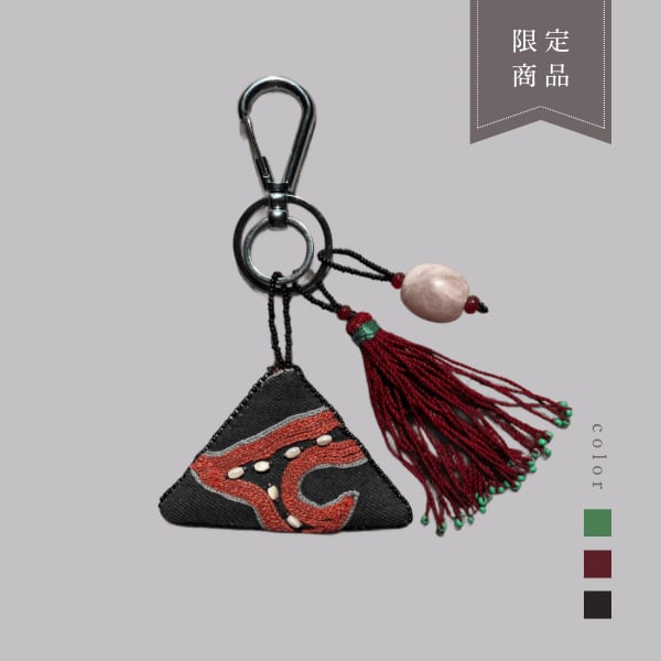 また、下にあしらわれたタッセルもトゥシュキィズに由来し、古くから装飾・お守り・祝福の象徴として使われてきました。中央アジアで昔から使用されてきたタッセルを使用しています。