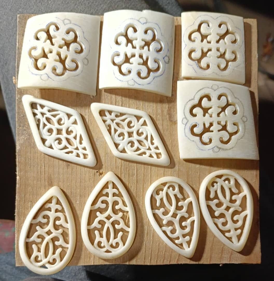 キルギスで一つずつ作られるこのボーンピアスは、厳選された天然牛骨を使用し、丁寧に仕上げています。キルギスヒの伝統的なデザインと自然の素材が織りなす美しさが魅力です。